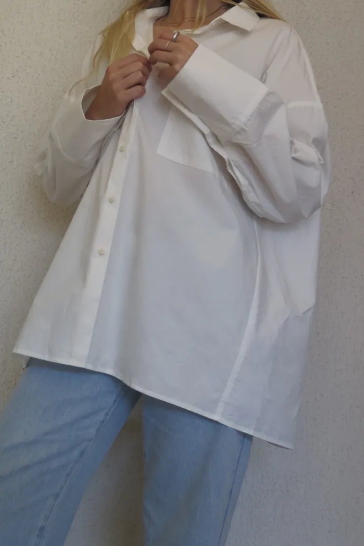 The Classic Shirt – White by Zulu & Zephyr features a traditional shirt collar and long sleeves with cuff details. Designed with a relaxed, oversized fit, this shirt is made from a soft, lightweight fabric and finished with branded corozo buttons down the centre. Perfect for pairing with denim for an everyday look.