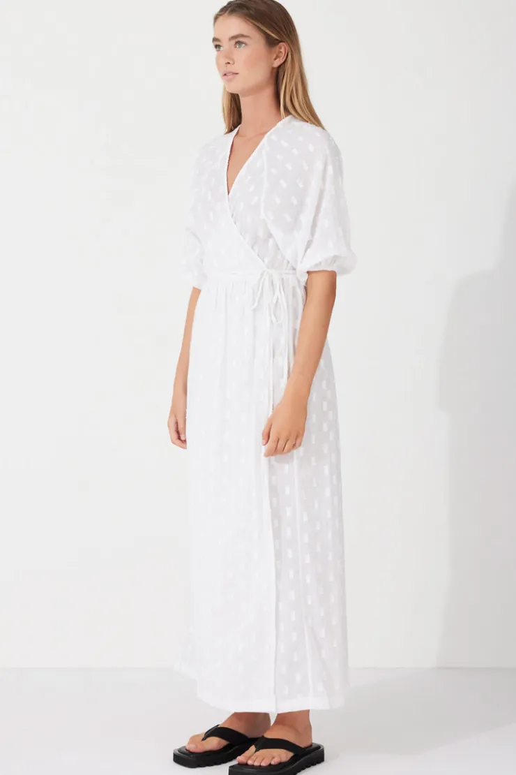 The Milk Textured Wrap Dress by Zulu & Zephyr is a feminine wrap dress offering an adjustable fit, midi length, and voluminous sleeves, in a lightweight semi-sheer textured dobby cotton. Pair this with the essential Zulu & Zephyr Thong – Black to complete the outfit.